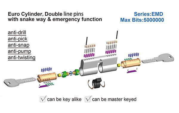 Euro cylinder,double line pins with snake way & emergency function