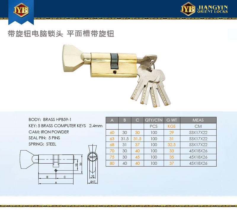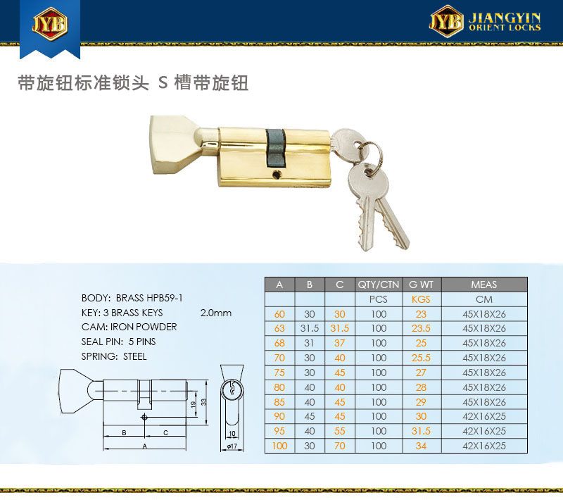 带旋转标准锁头S槽带旋钮