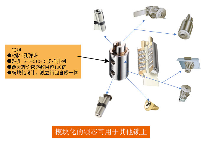 ● 模块化设计的锁芯能拓展到各类型的锁体中